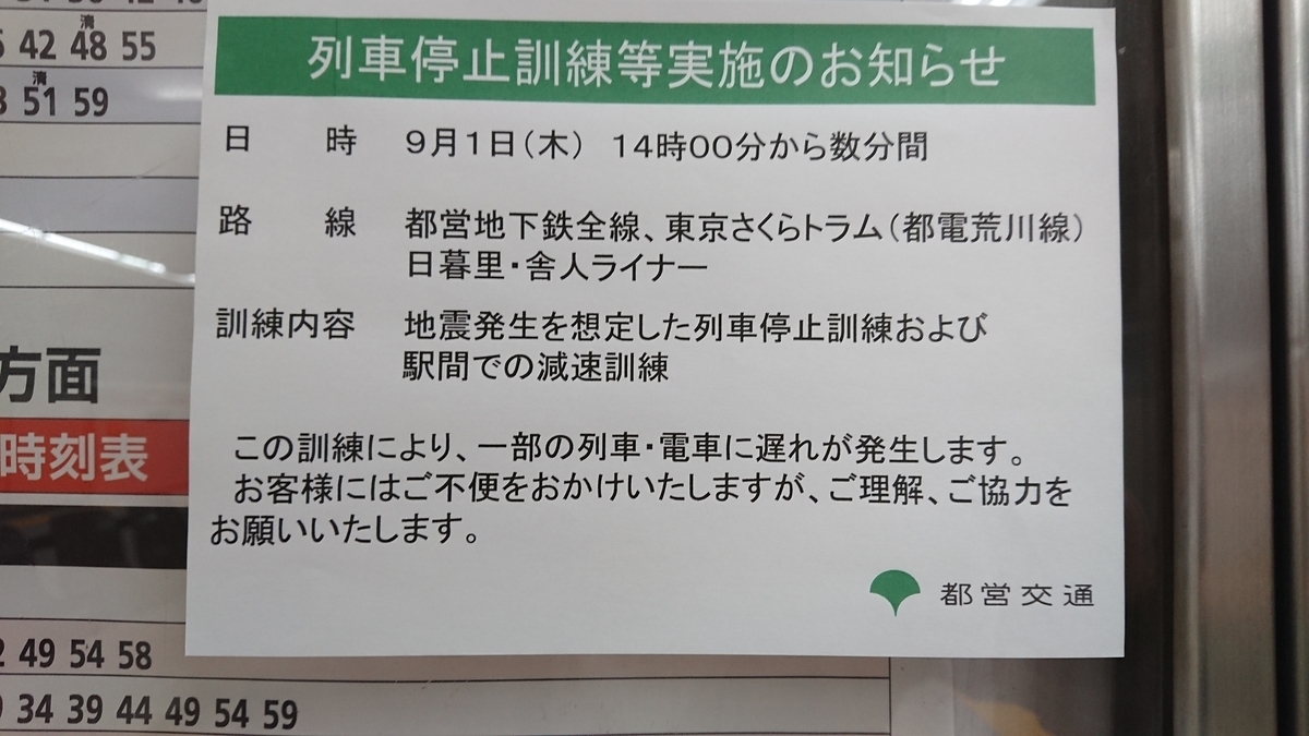 9月1日 列車停止訓練実施のお知らせ